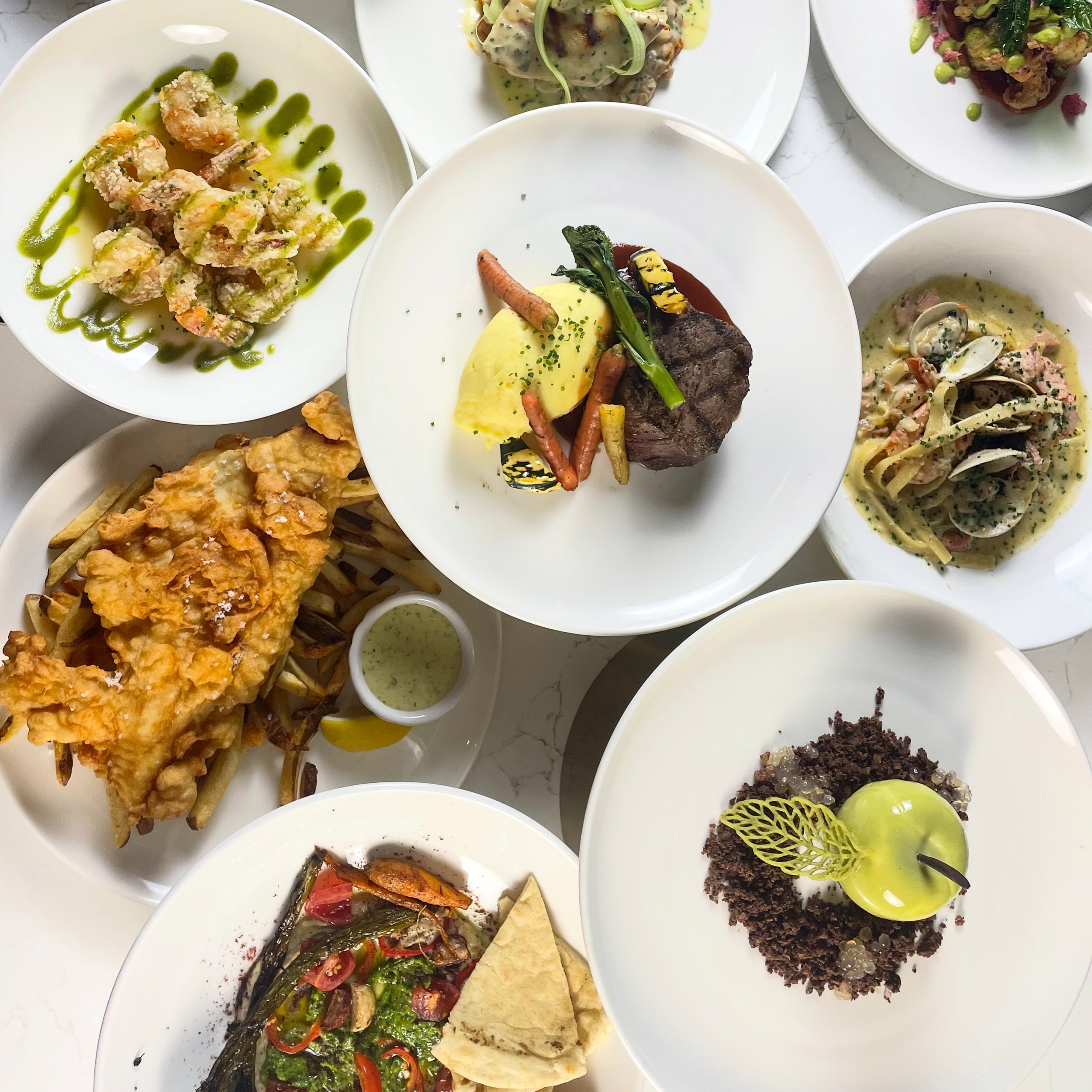 Grilled Shrimp +9, Grilled Chicken +10, Grilled Steak Skewers +14, Roasted Salmon +16